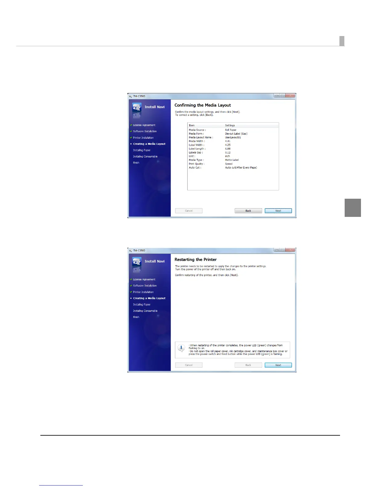 "Confirming the Media Layout” screen appears.
