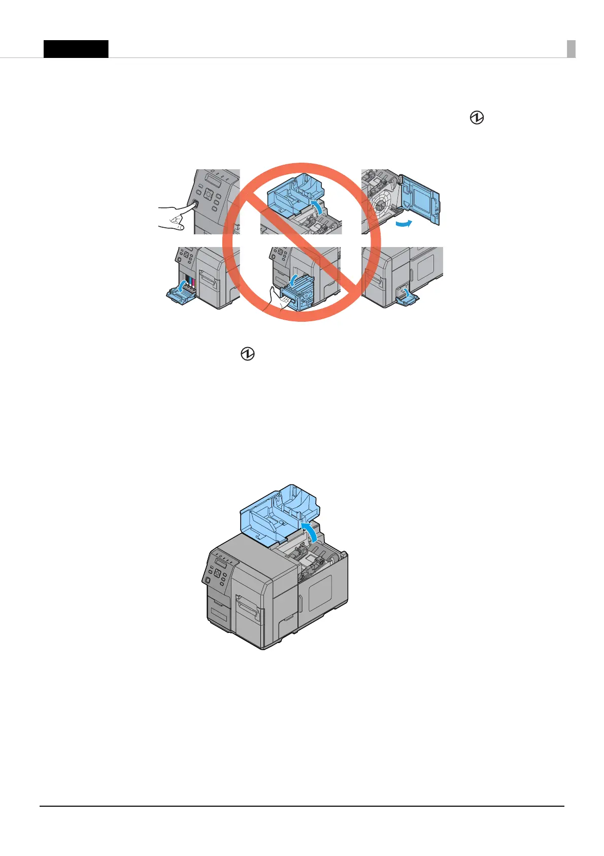 Never open any cover on the product or turn off the product during ink charging (while the (Power) LED is