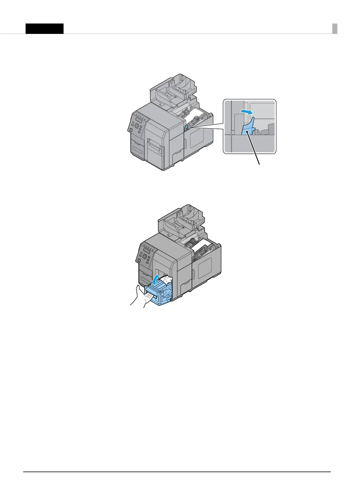 3. Pull the front cover open lever at the paper feed slot.