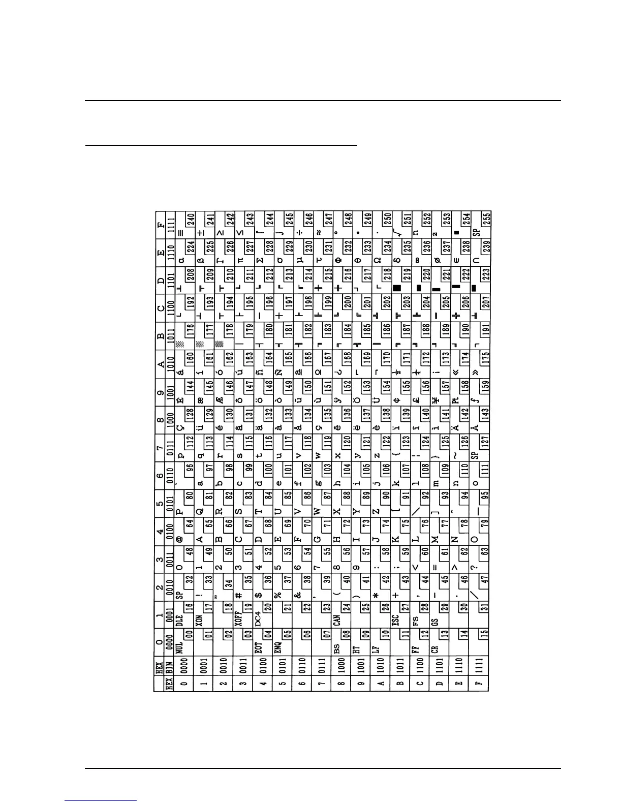 NOTE: Character code tables show only character configurations, not the actual print pattern.