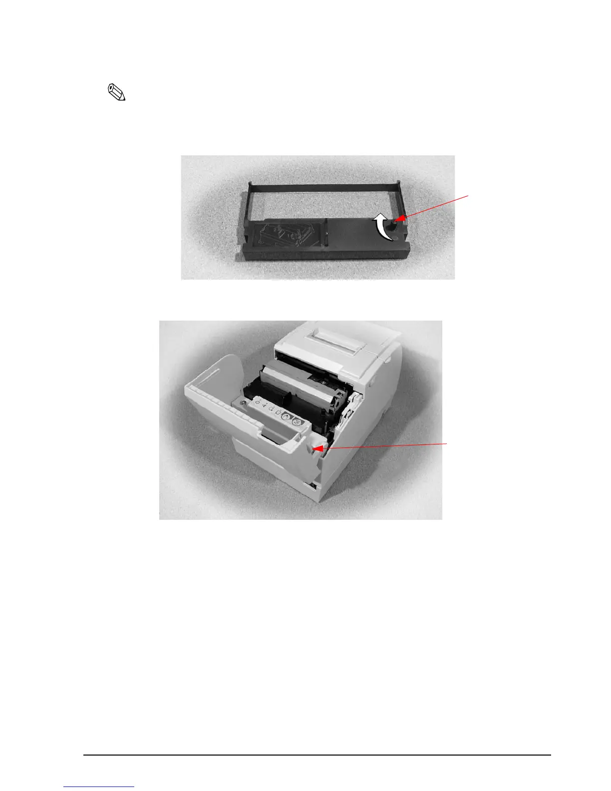 1. Unpack the ribbon cassette and turn the knob in the direction shown to take up any slack.