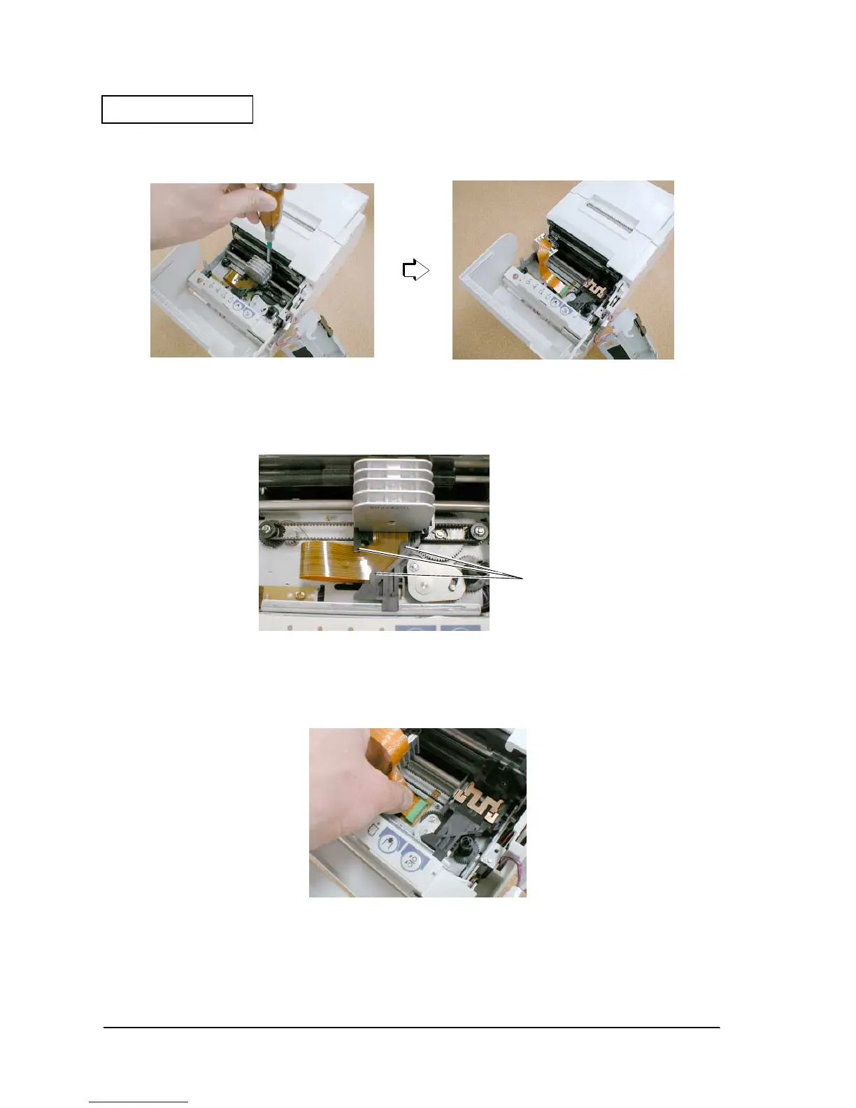 When you are attaching, insert the print head unit ribbon cable (FPC) below the three tabs.