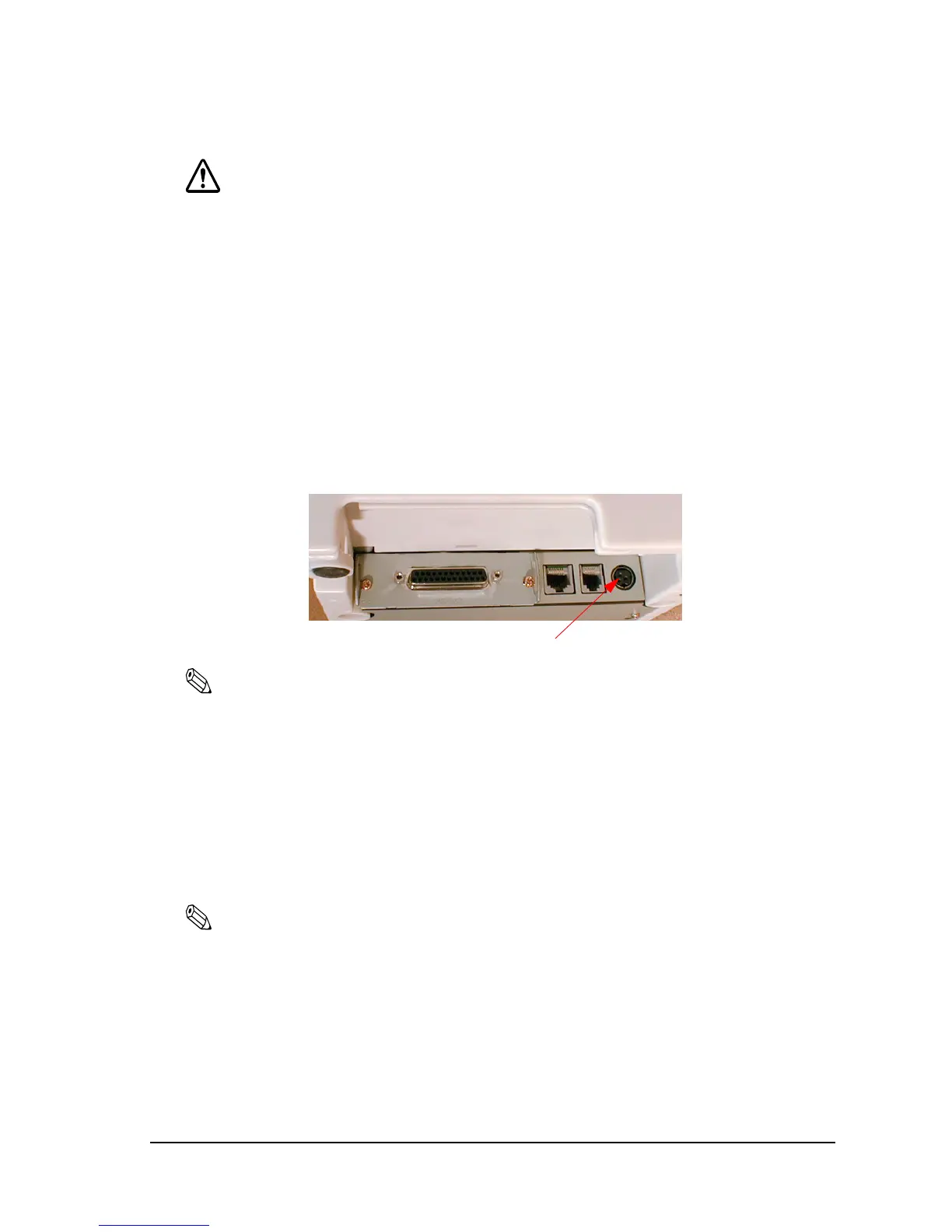 1. Make sure the printer’s power switch is turned off, and the power supply’s power cord is