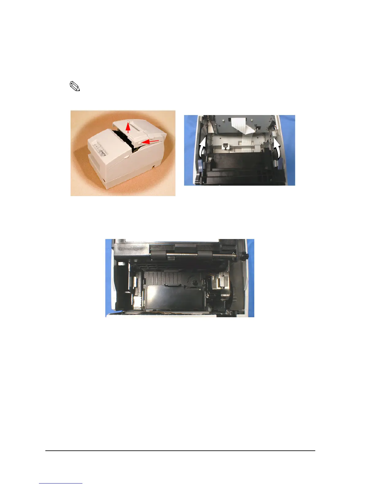 2. Open the unit cover, as shown below. Inside the printer, push the levers backward to open