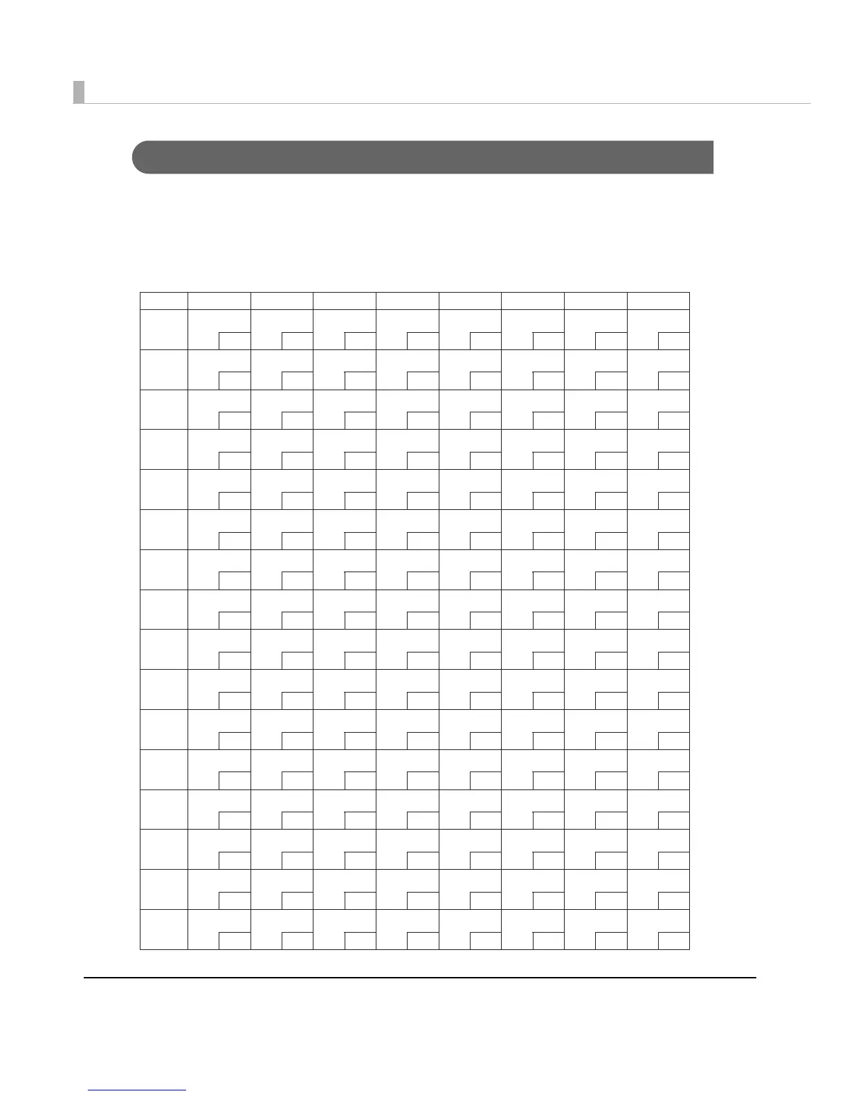 The following fonts are defined for the font B of slip printing as default. (Character structure: 7 ×