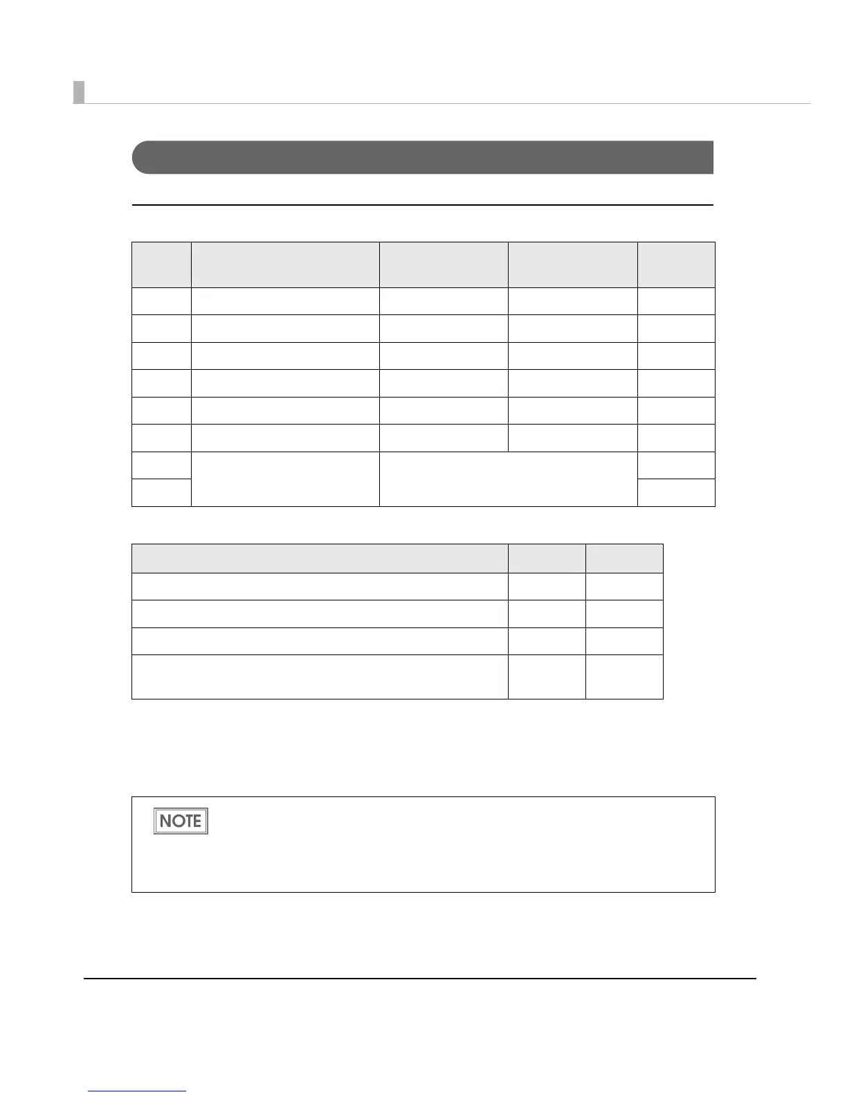 values listed in the lower portion of the row using a command, memory switch setting mode, or