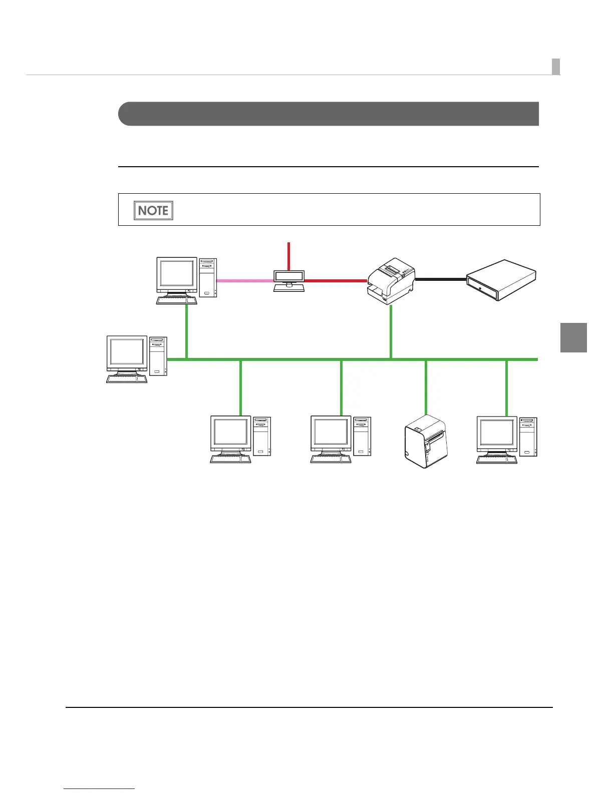 Connect the printer to a network by a LAN cable via a hub.