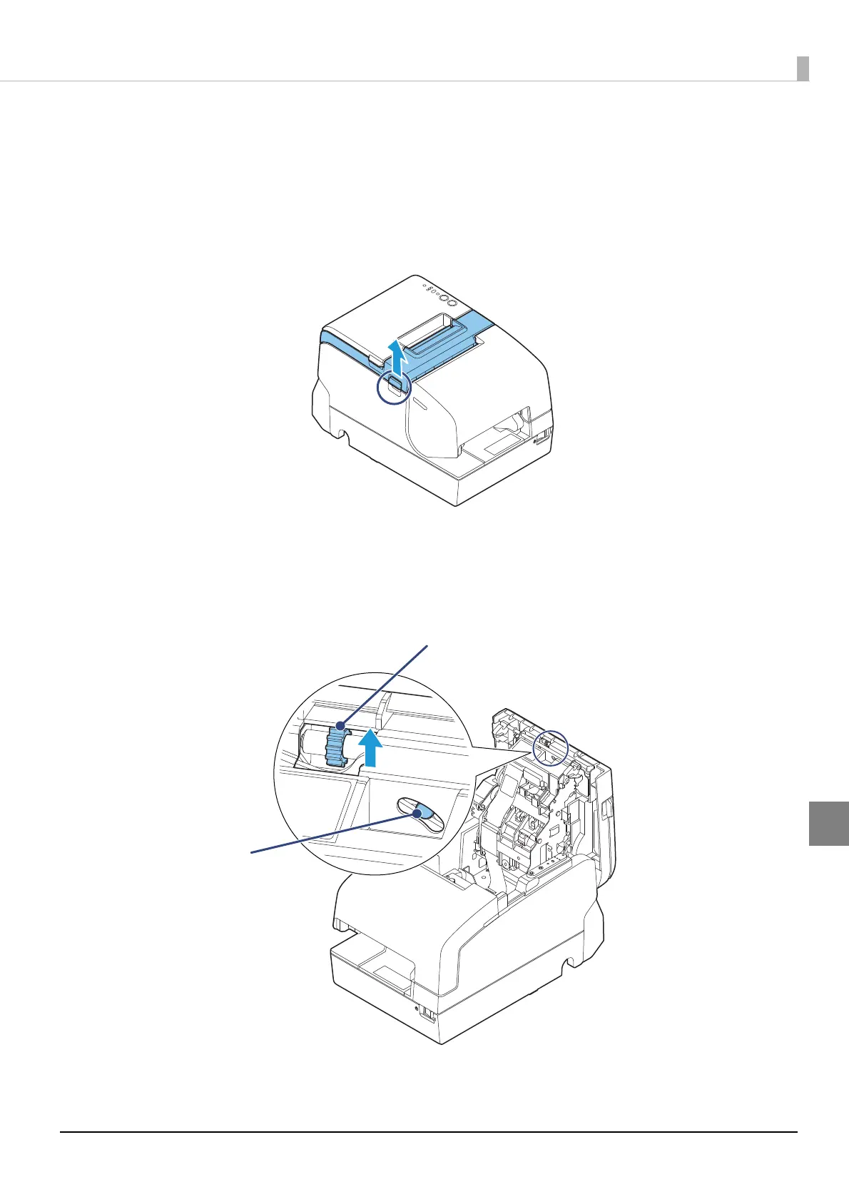 When the roll paper cover is locked and will not open, follow the steps below to return the autocutter blade to