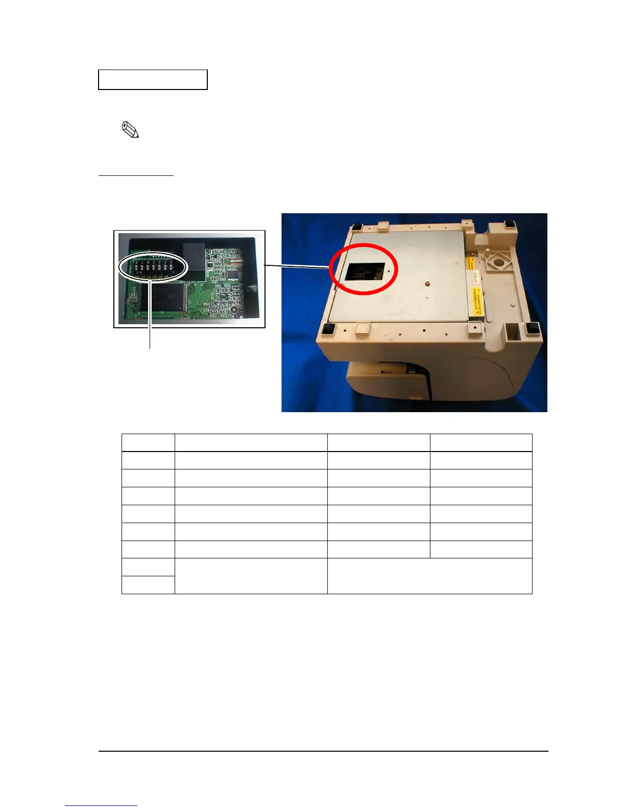 The DIP switches are located on the main board inside the bottom cover of the printer.