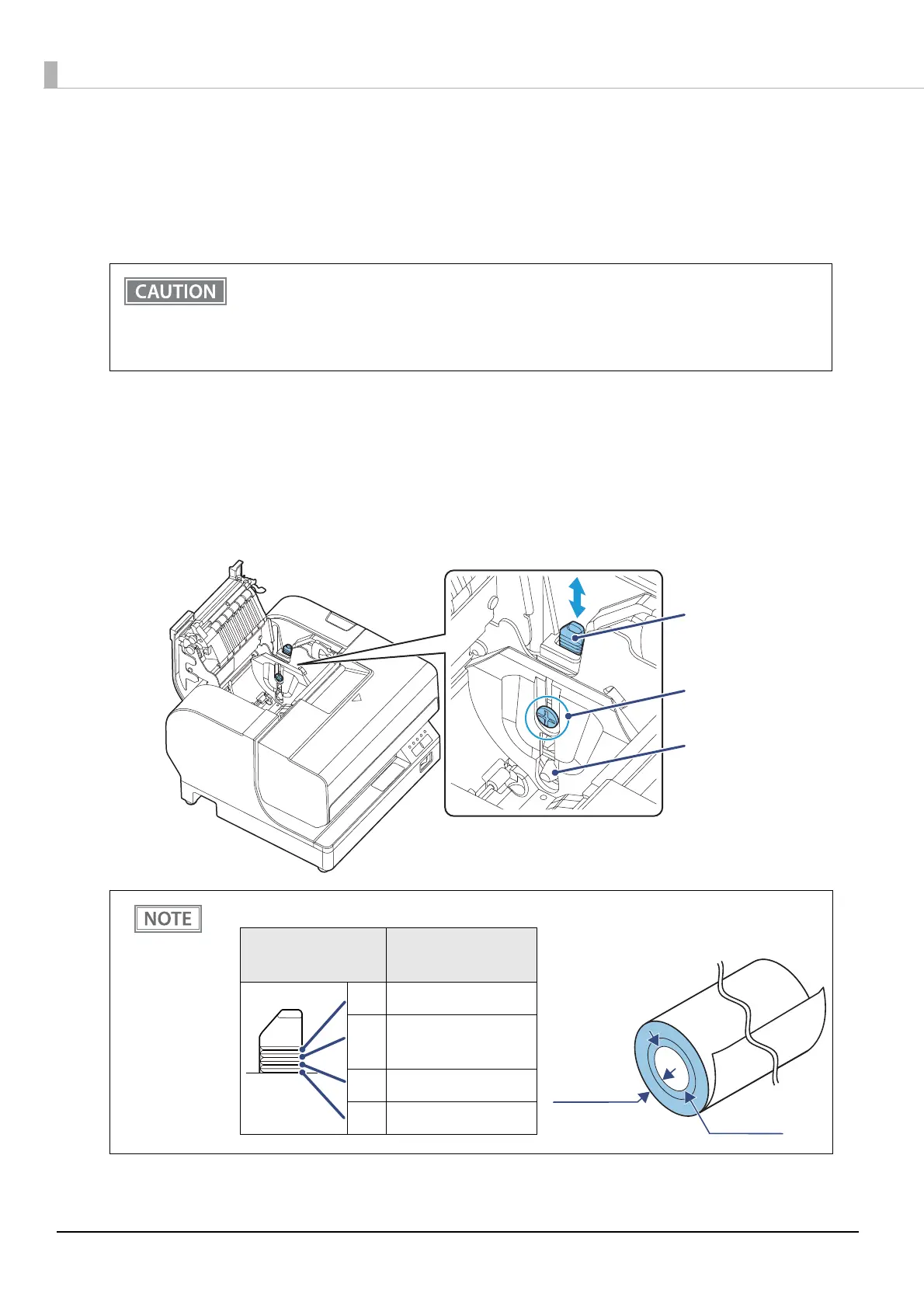 use roll paper with an inner core diameter of 10 mm {0.39"} or larger.