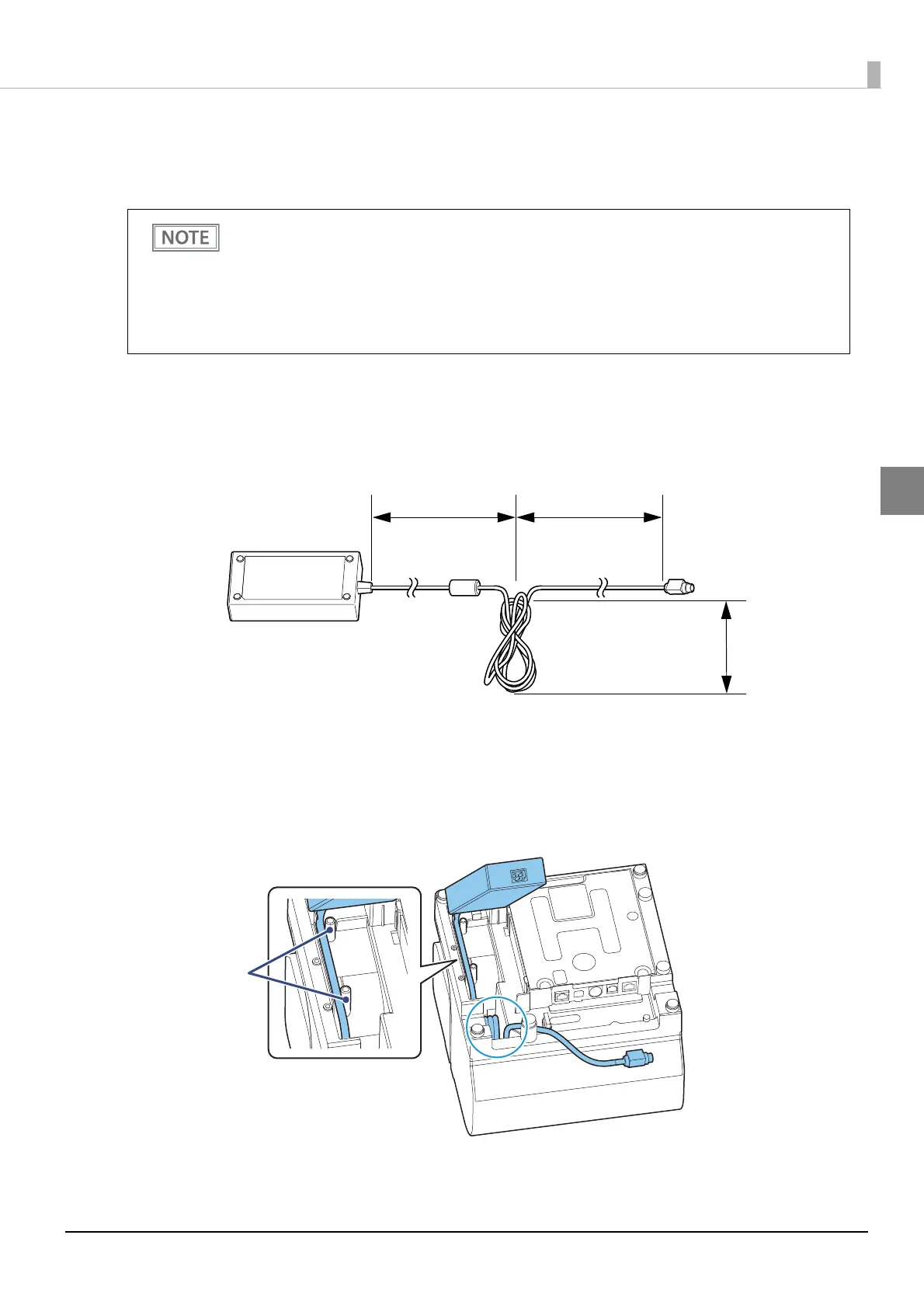 Set the bundled part of the DC cable into the empty space inside the printer indi-