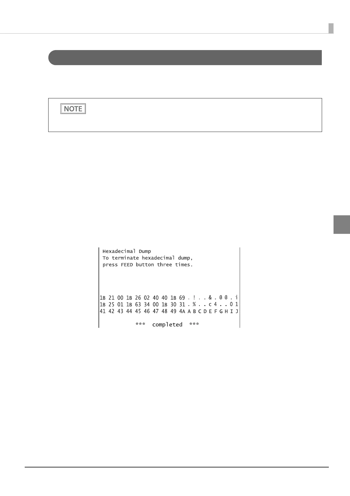 From this point, all data received by the printer is printed in the corresponding hexadecimal num-