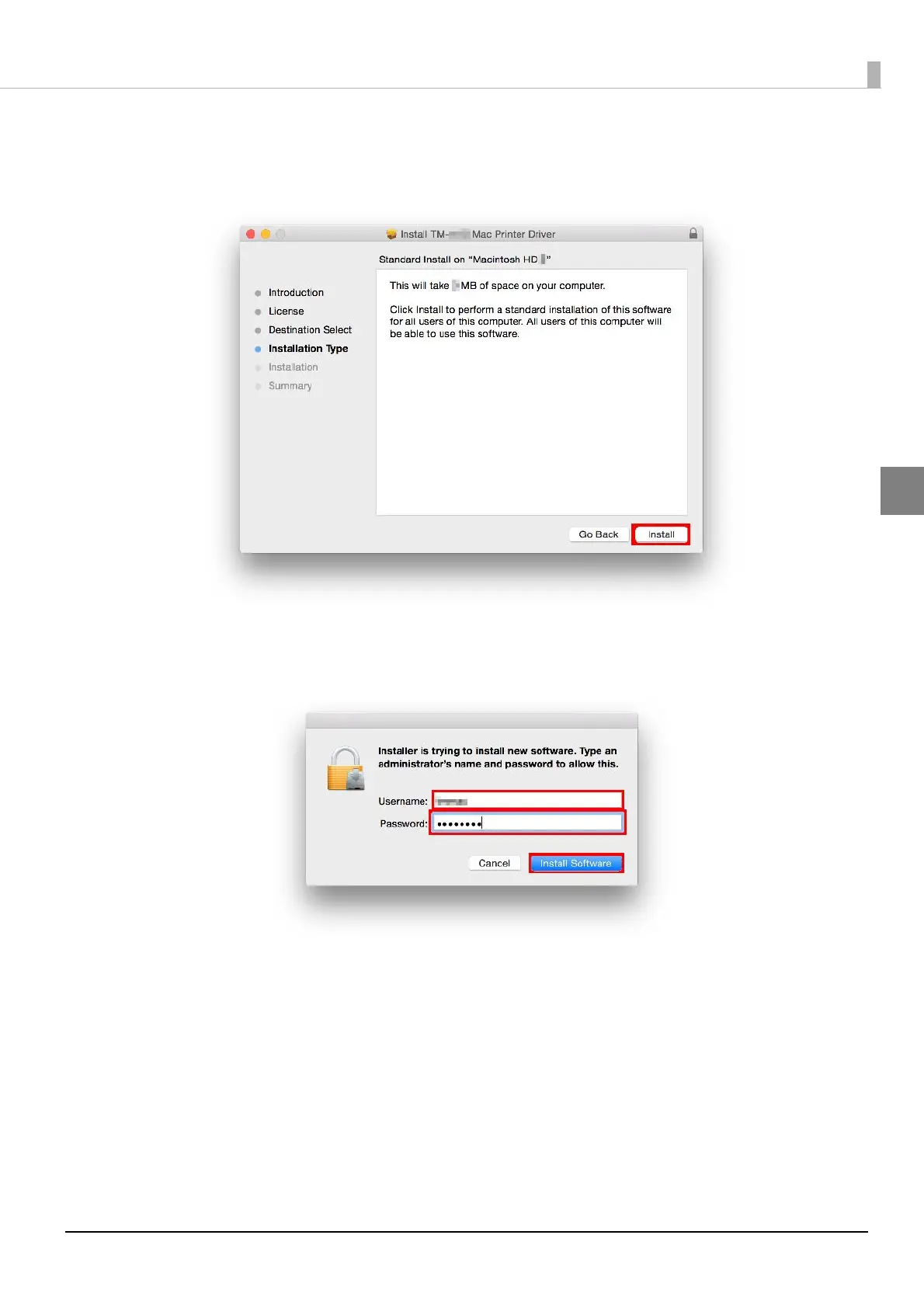 The "Standard Install on "Macintosh HD"" screen appears. Click the [Install] button.