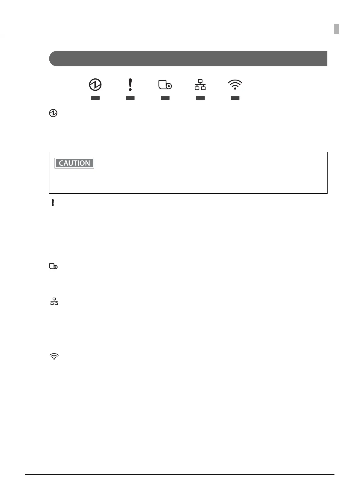 • Lights when there is not enough roll paper left, or when no roll paper is left.