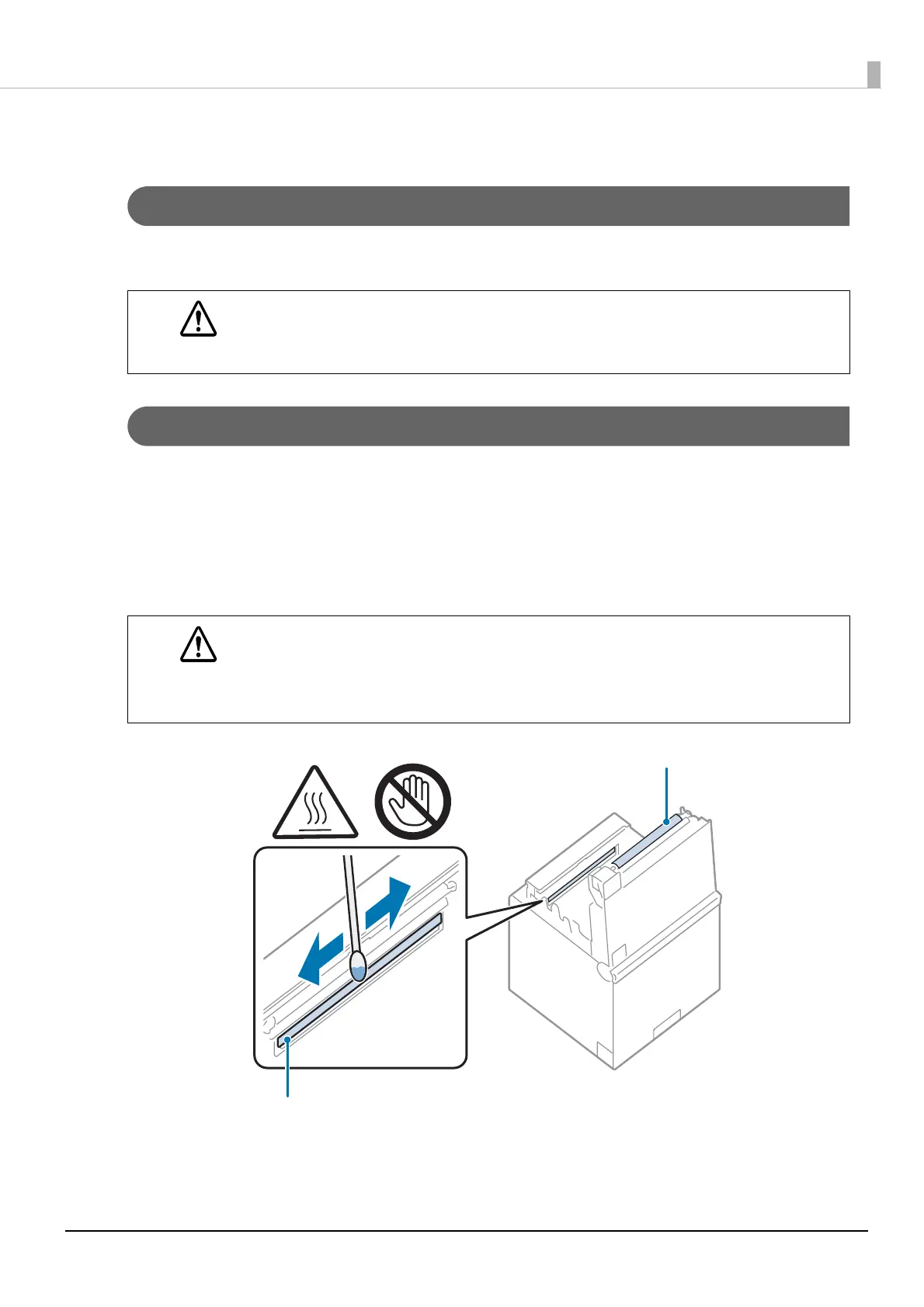 • After printing, the thermal head and its surroundings can be very hot. Do not touch it and
