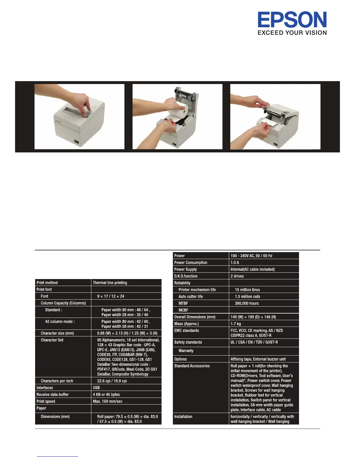 cpi : characters per 25.4 mm (characters per inch) *Contents of CD-ROM: Drivers & Tool software