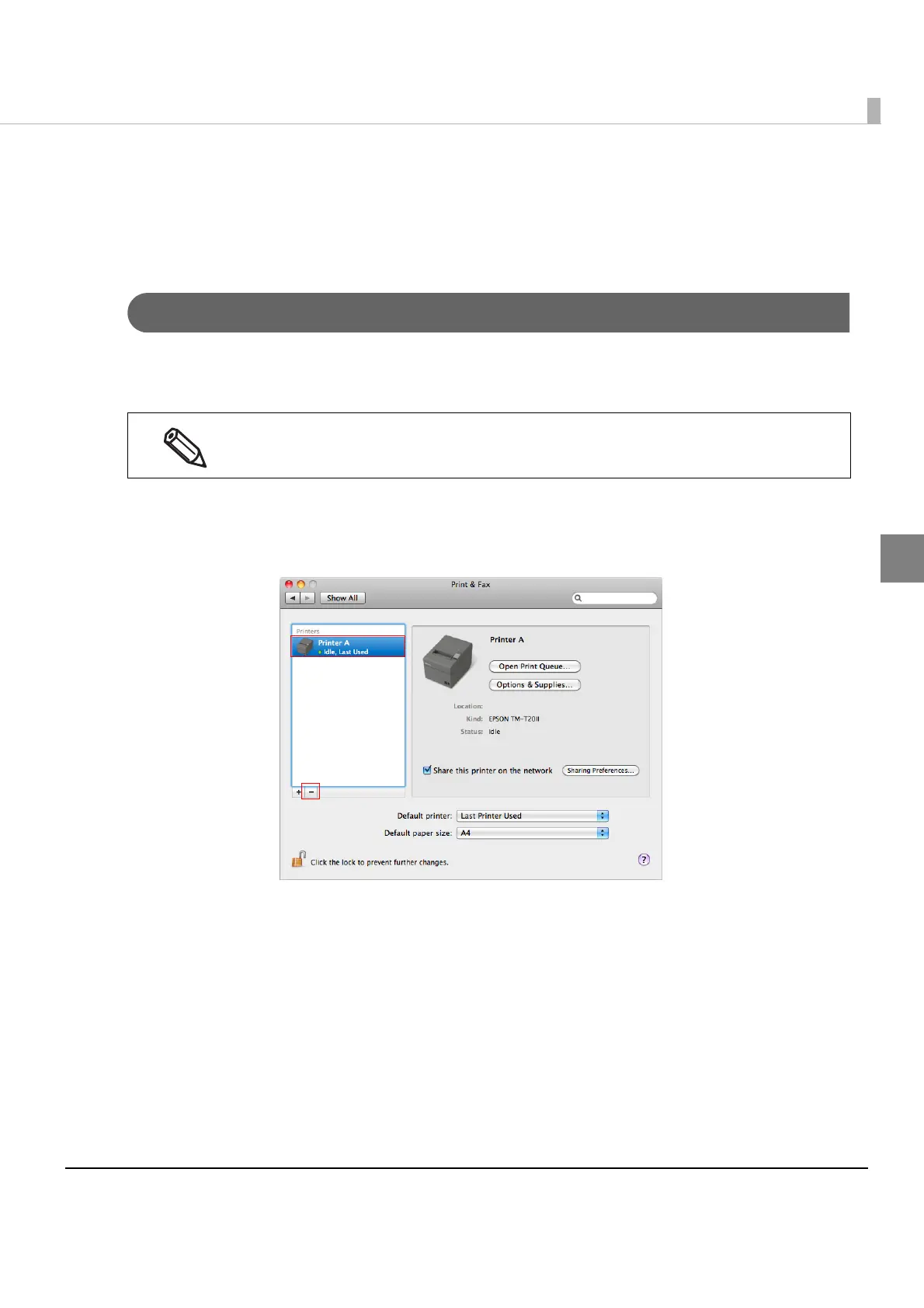 Select[SystemPreferences]‐[Print&Fax]toopenthe“Print&Fax”screen.Select“Printer