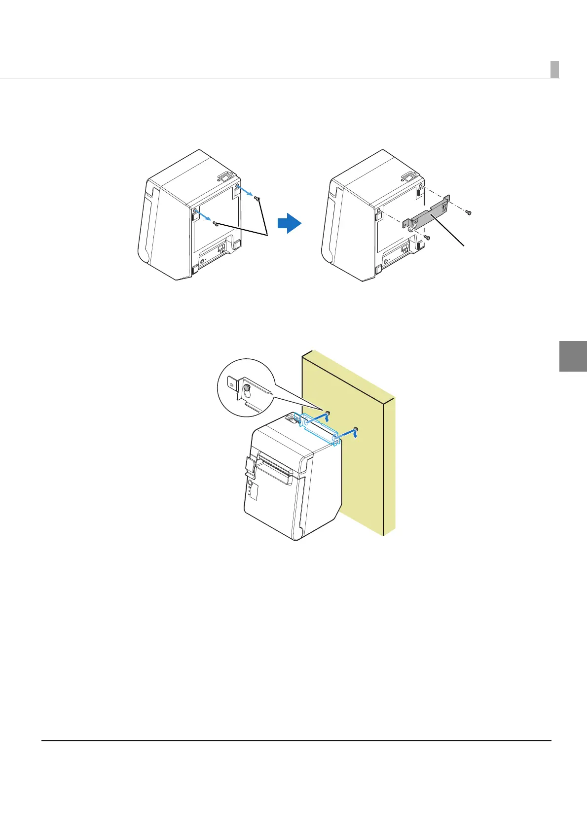 Align the holes in the wall hanging bracket with the screws on the wall,
