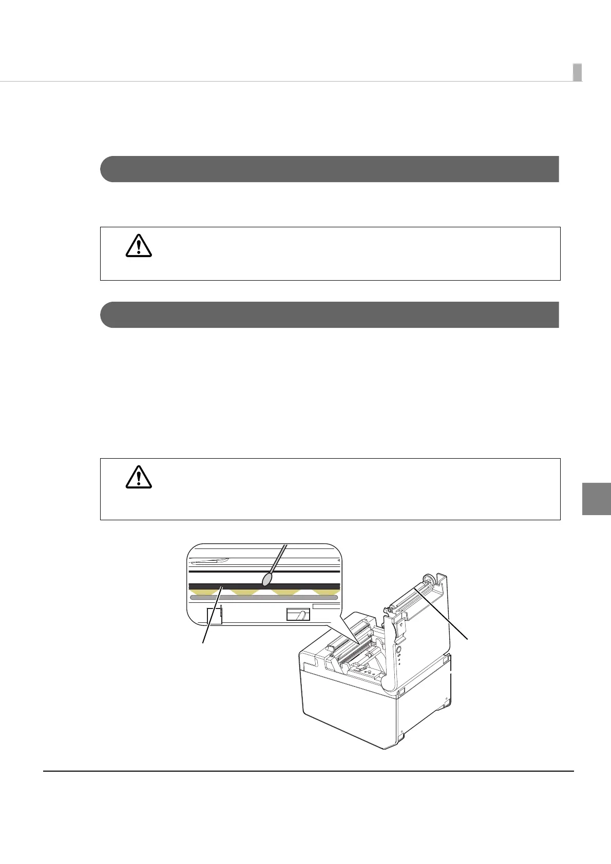 After printing, the thermal head can be very hot. Do not touch it and let it cool