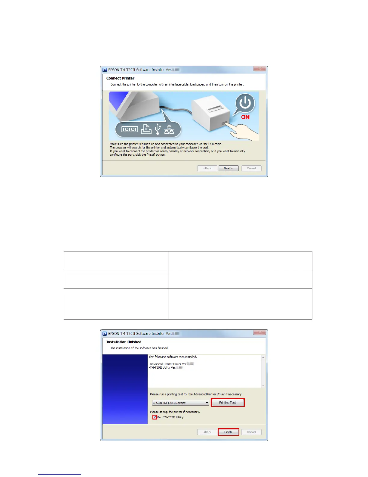 The Connect Printer screen appears. Connect the computer to the printer, and turn the printer on.