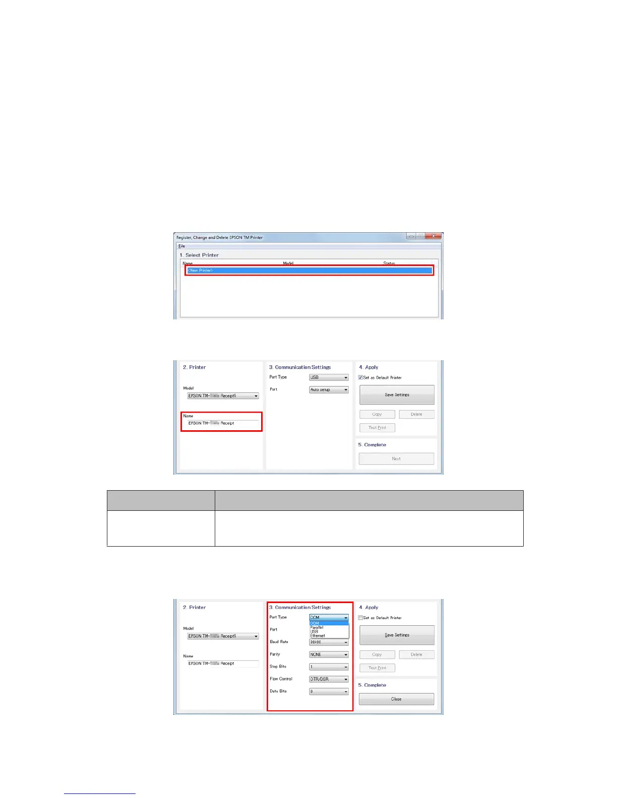 Select a port to use (Serial/USB/Ethernet) from Port Type under 3.Communication Settings. Necessary