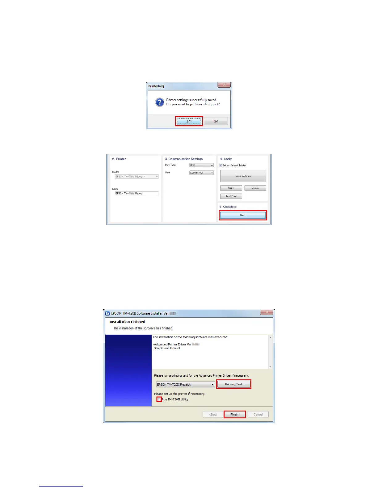 Click the Printing Test button. When the test print is finished, click the Finish button to end the installation.