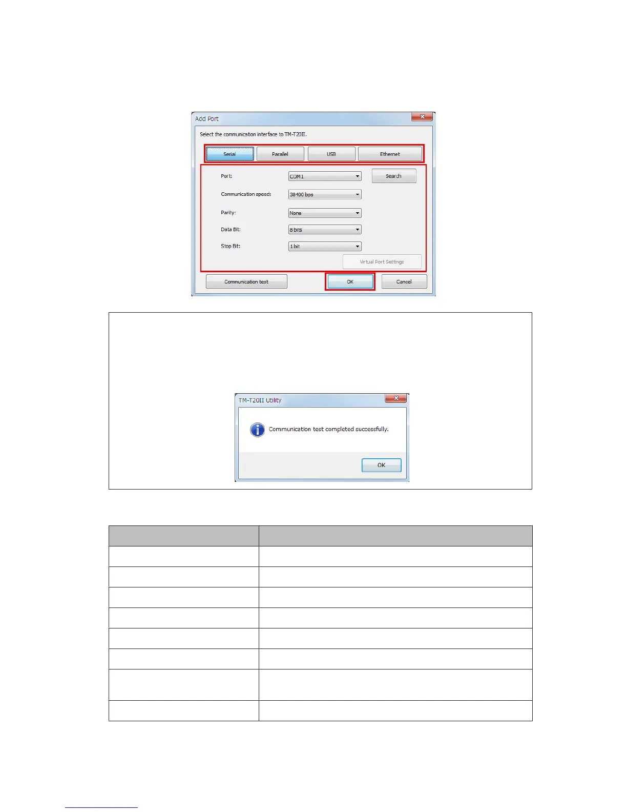 ❏ Clicking the Communication test button displays the communication result on the screen. It does not