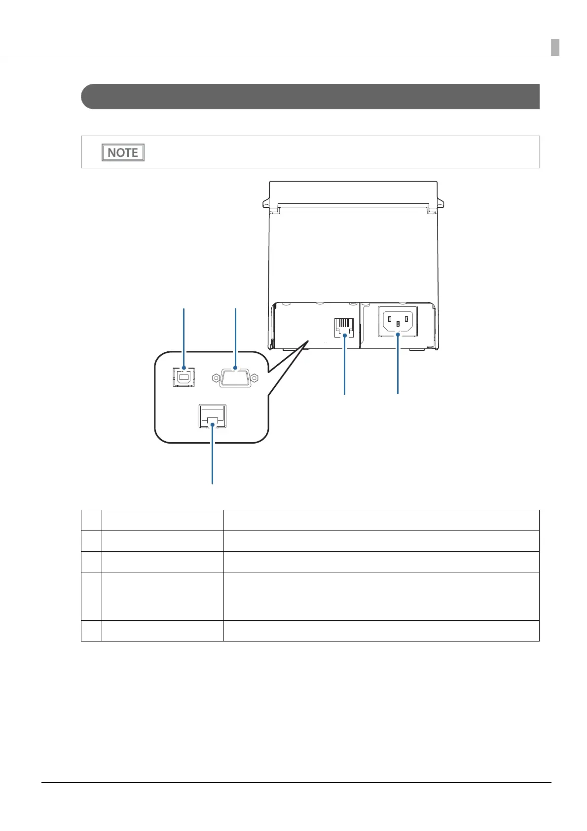 2 Serial interface Connects the serial cable for connecting to a computer.