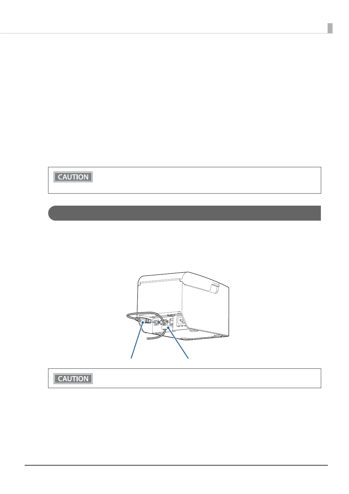 • The printer uses a modular connector specifically designed for the cash drawer. Do not connect