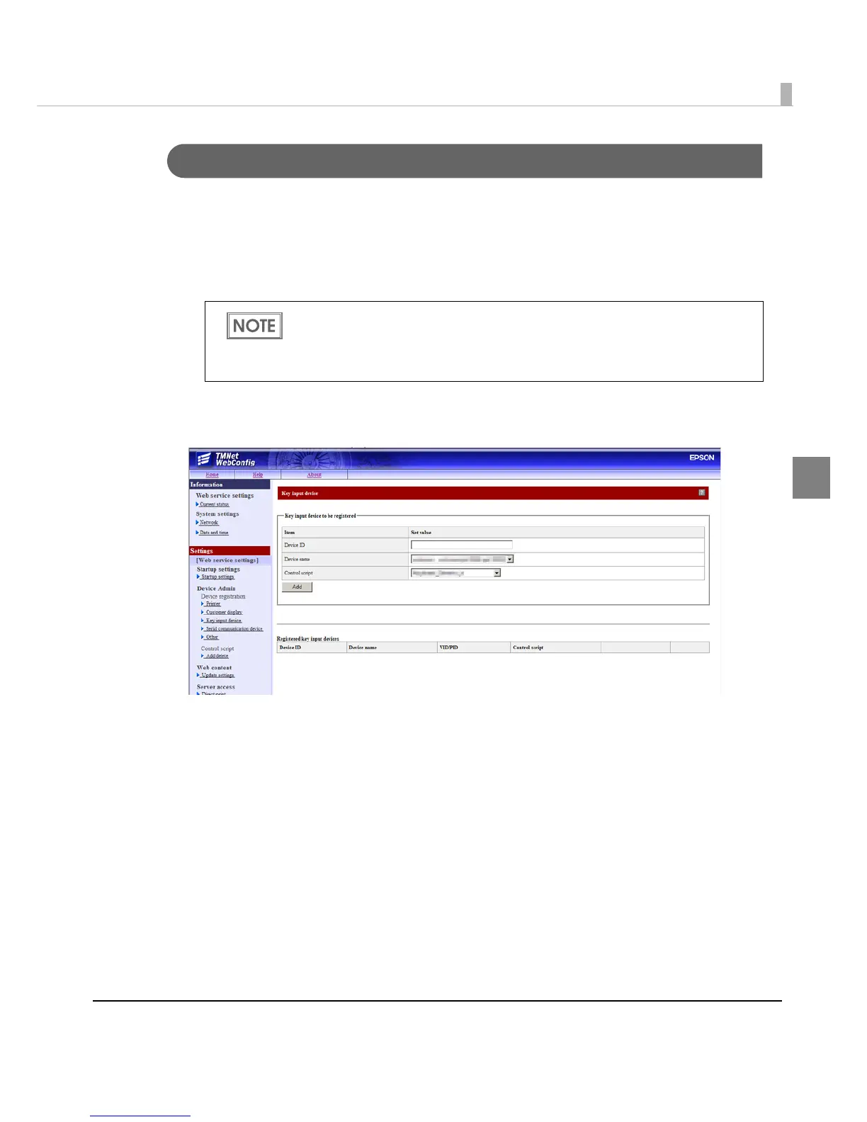 Use EPSON TMNet WebConfig to register a key input device on this product, following the