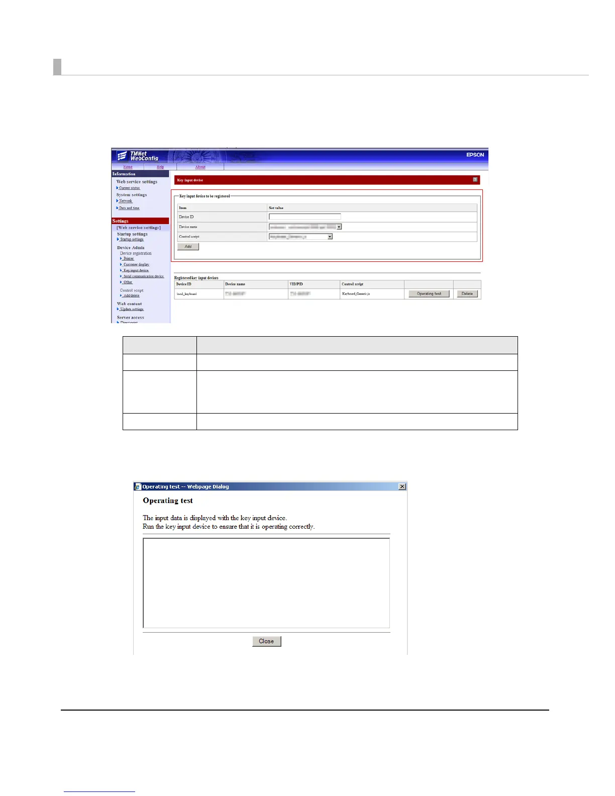 The [Operating test -- Webpage Dialog] screen is displayed.