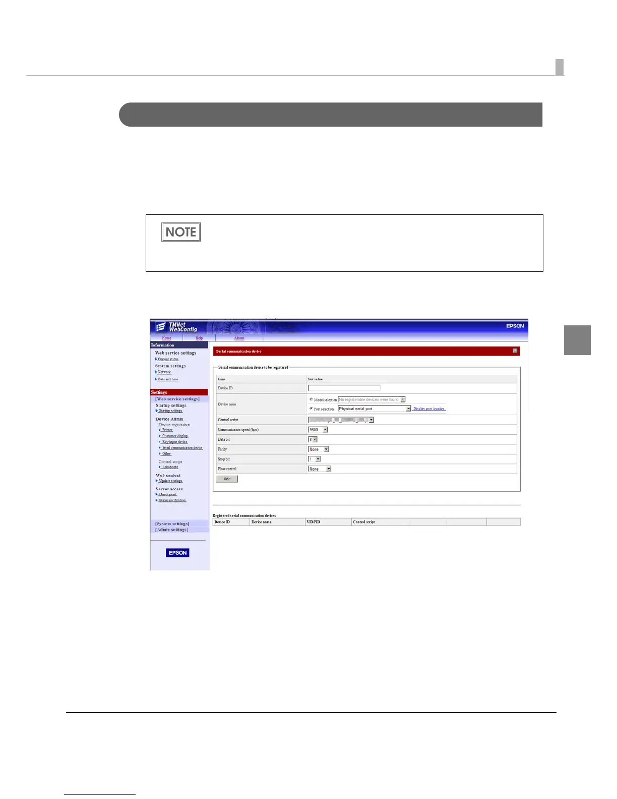 Use EPSON TMNet WebConfig to register a serial communication device with this product,