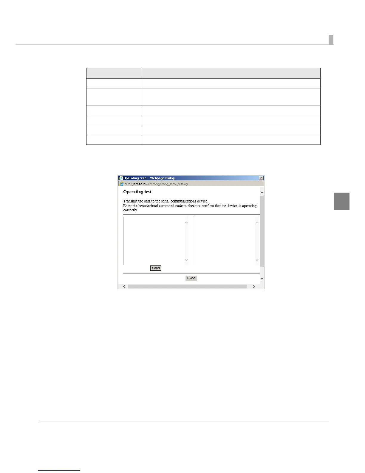 The [Operating test -- Webpage Dialog] screen is displayed.