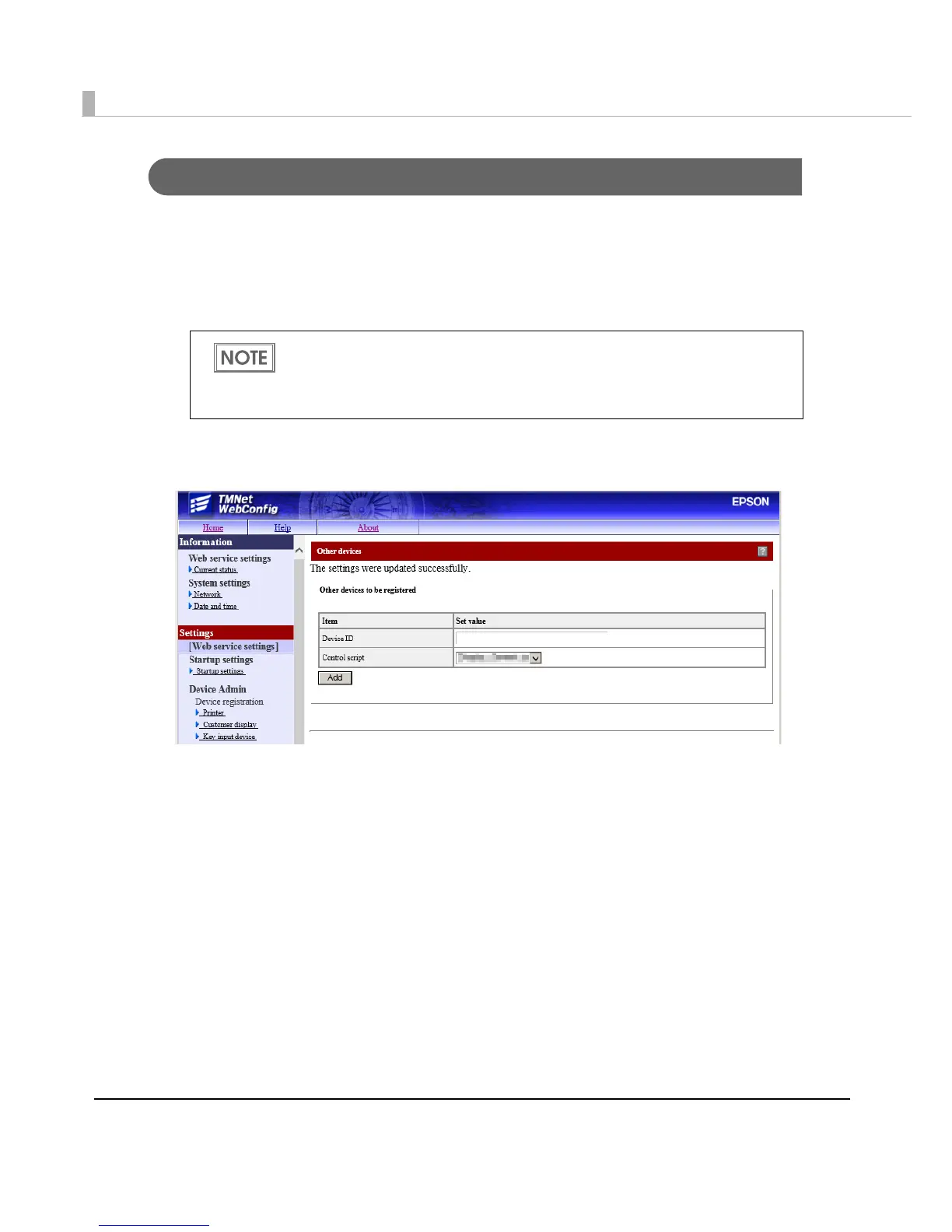 Use EPSON TMNet WebConfig to register other devices on this product, following the