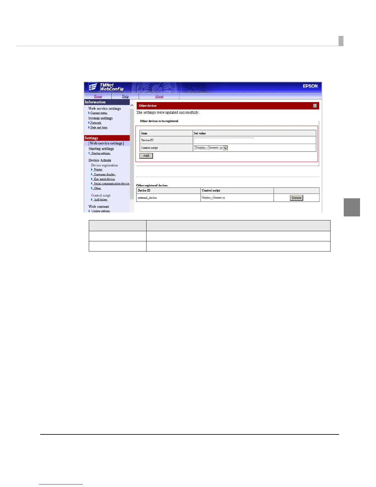 The information for the registered device is displayed in [Other registered devices].