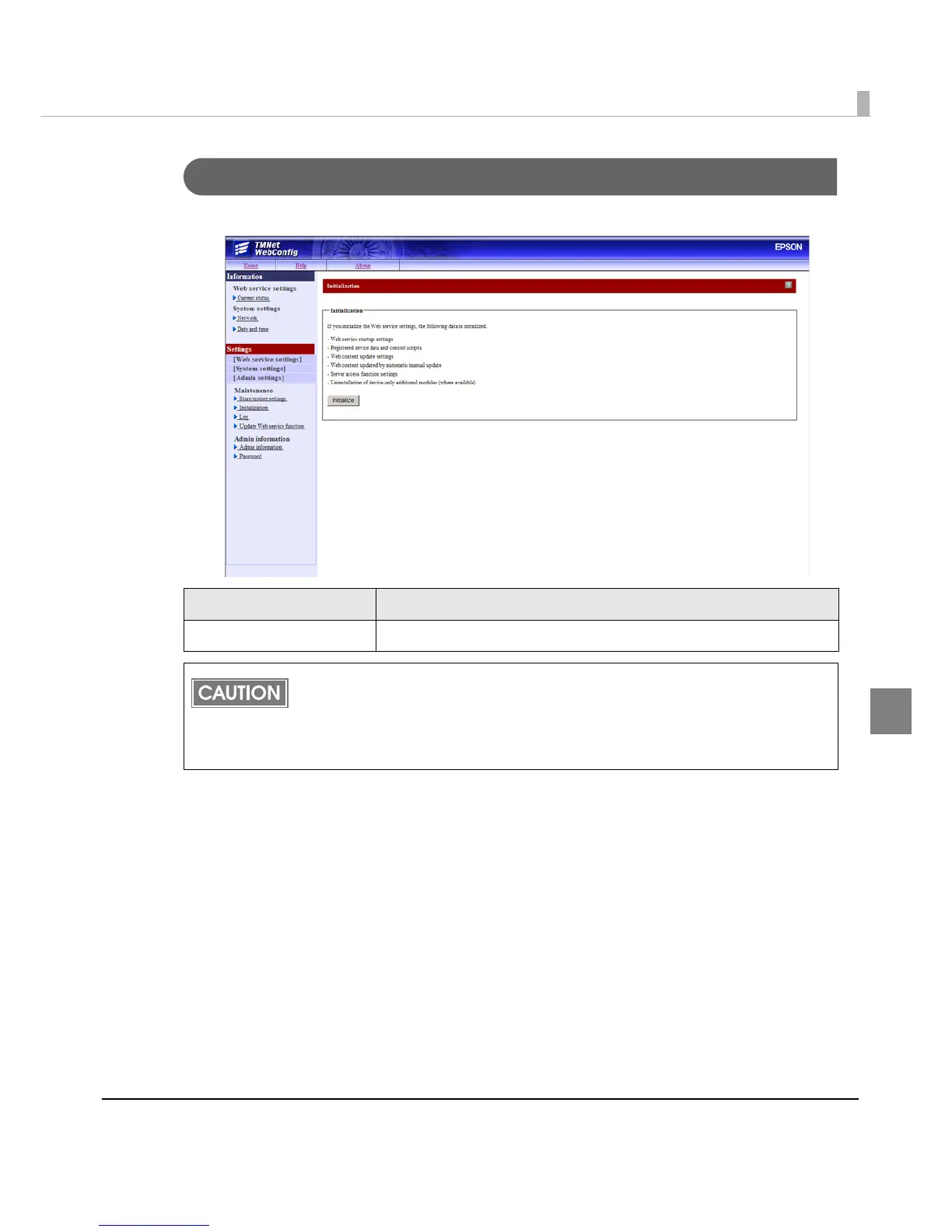 If you initialize the Web service, the password for EPSON TMNet WebConfig will also be