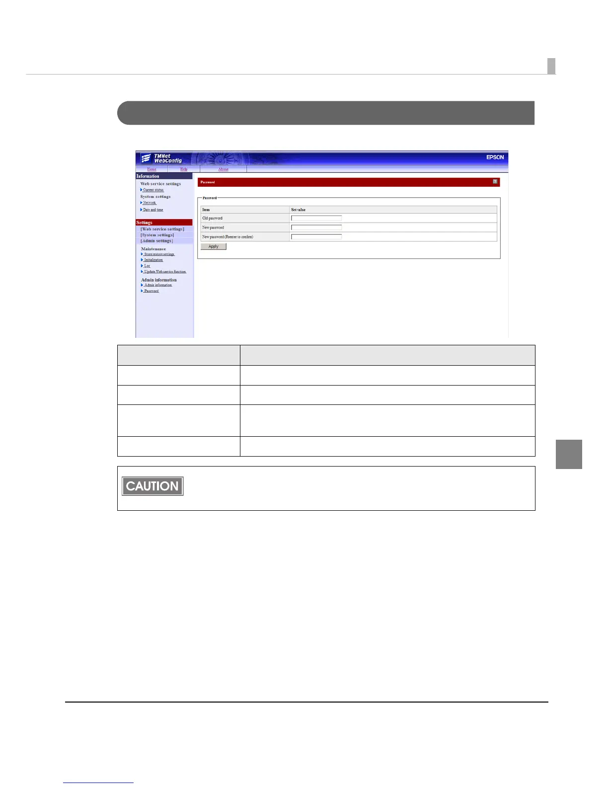 the set password for the password. The initial value for the password is "epson".