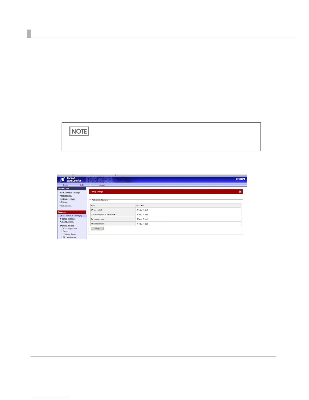Use EPSON TMNet WebConfig to perform the service setup settings, following the procedures