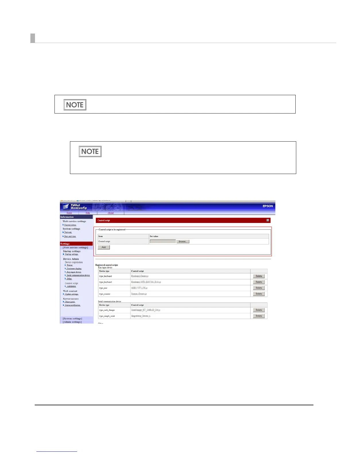 Use EPSON TMNet WebConfig to register device control scripts on this product, following the