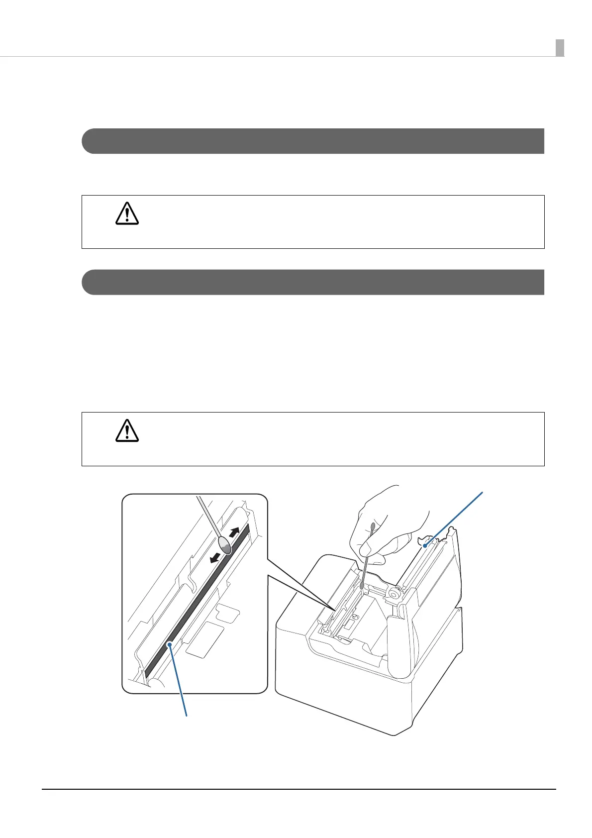 After printing, the thermal head can be very hot. Do not touch it and let it cool before you clean it.