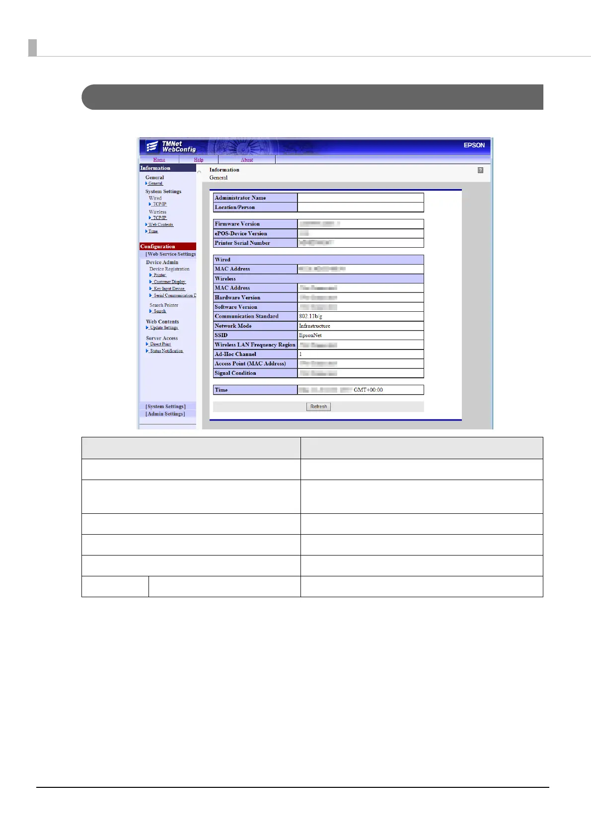 Printer Serial Number Shows the serial number of the TM-T83II-i.