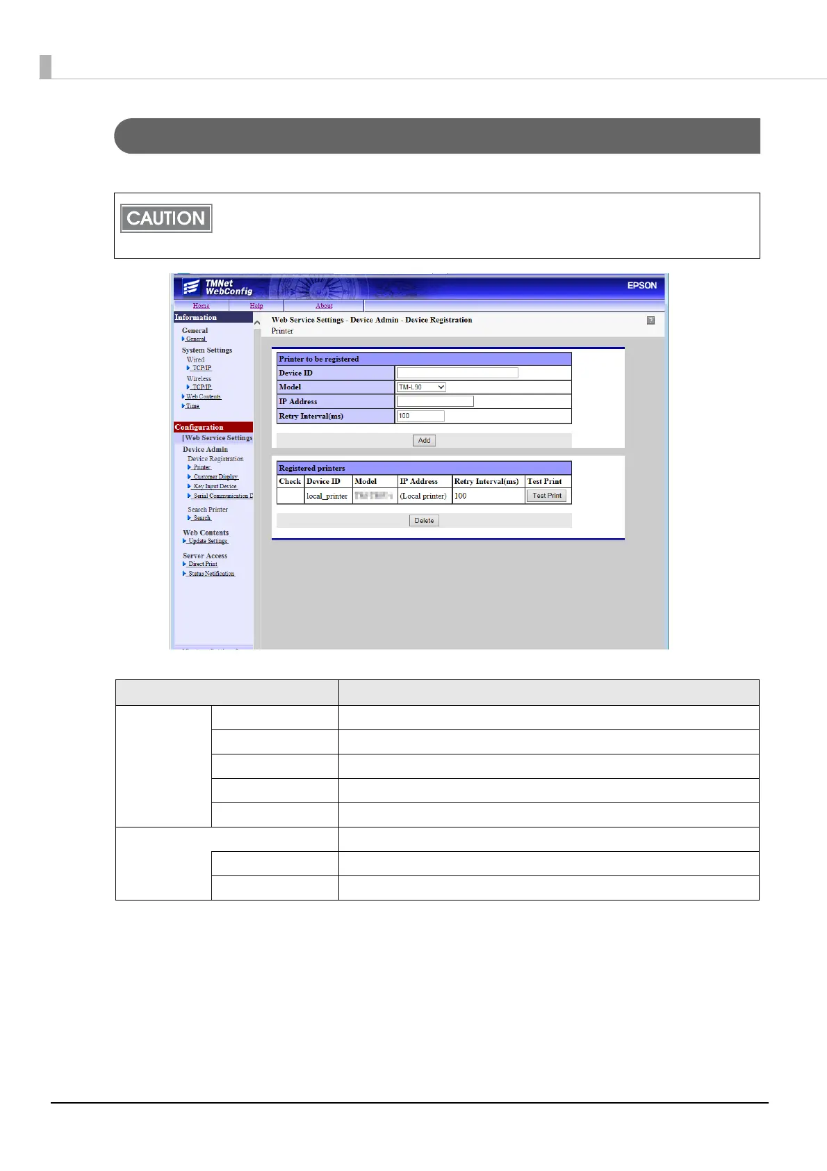 Web Service Settings - Device Admin - Printer
