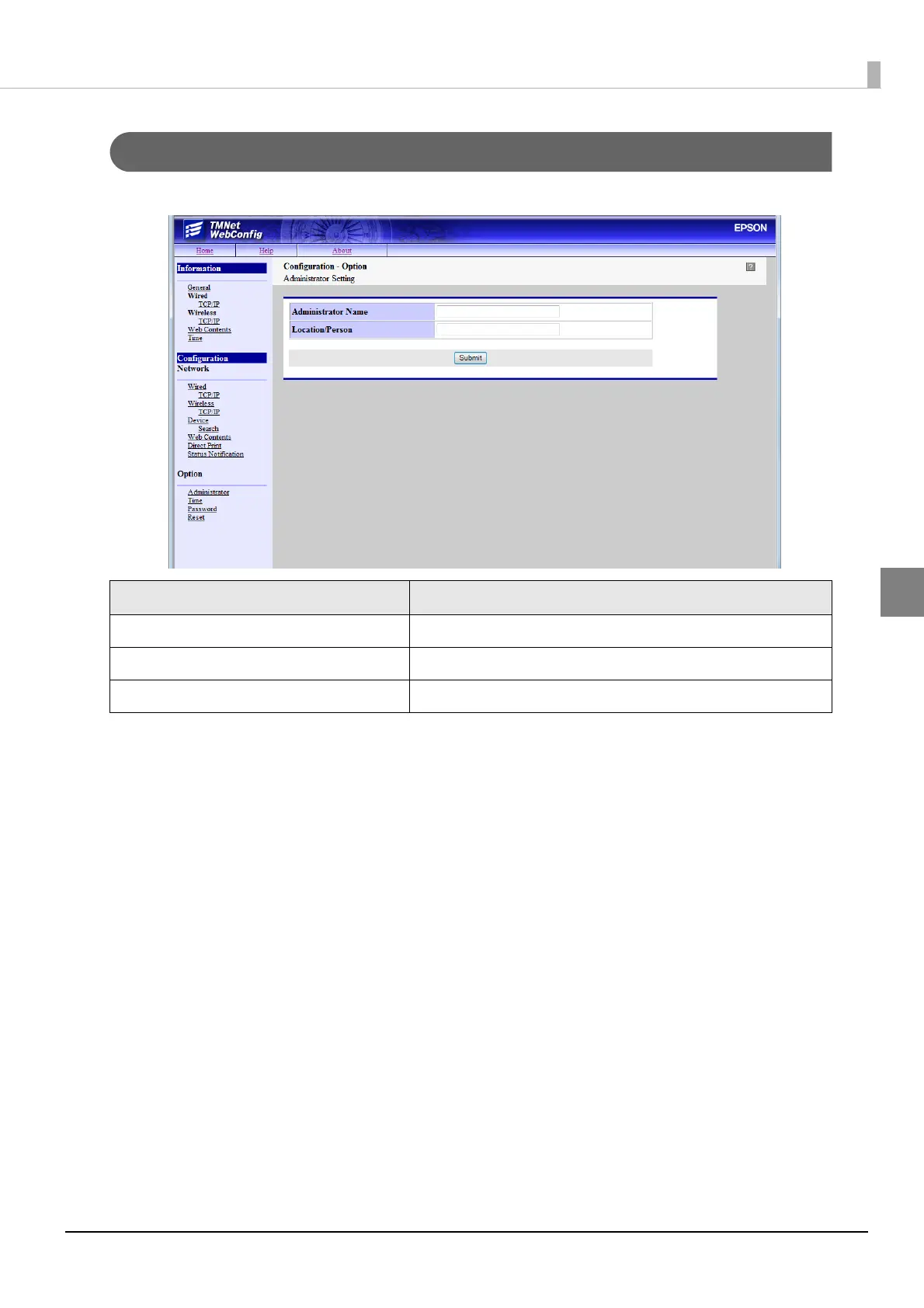 Administrator Name Sets the name of the administrator of the TM-T83II-i.