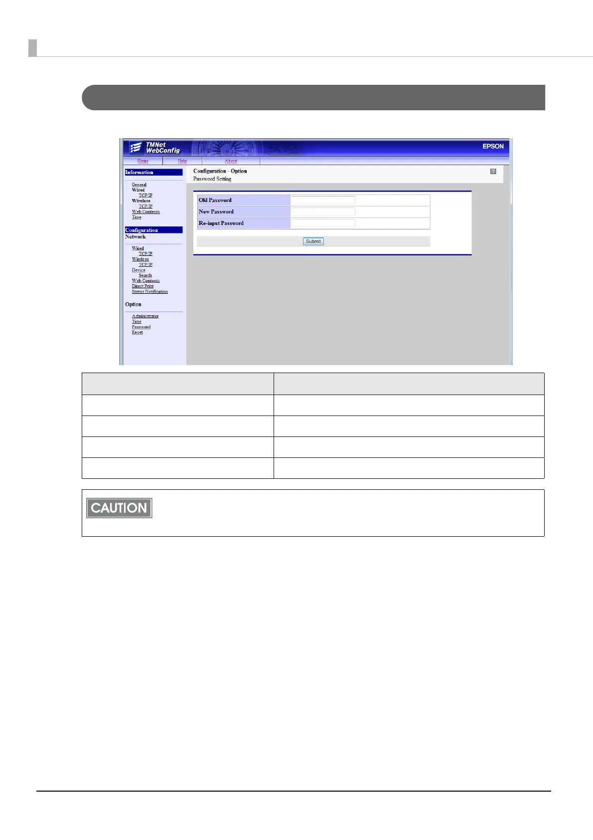 You can change a password of EPSON TMNet WebConfig.