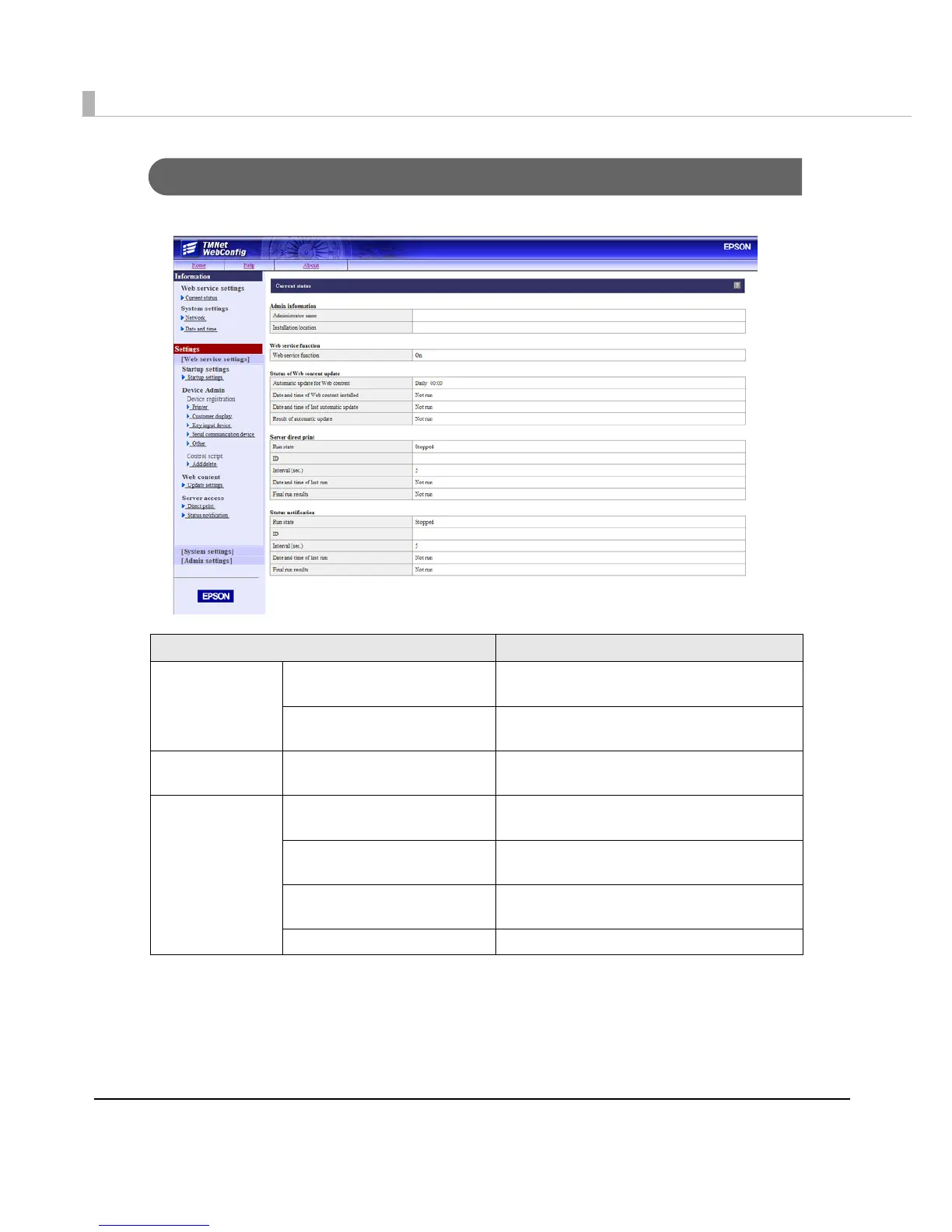 Information - Web service settings - Current status