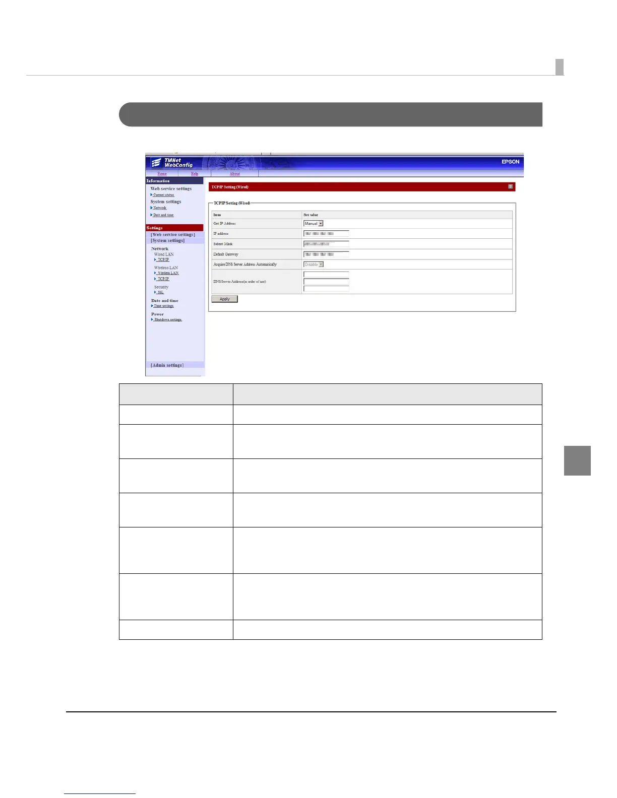 Performs TCP/IP settings for this product's wired LAN.