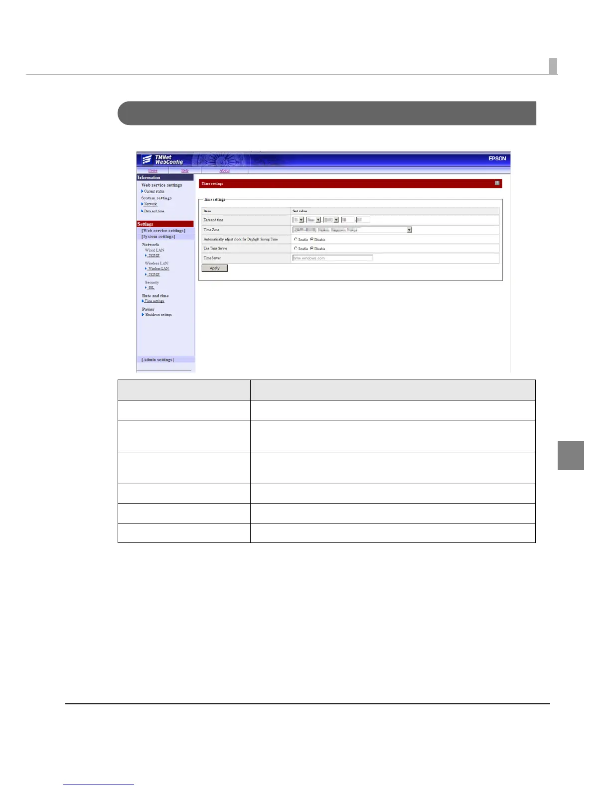 Time Zone Sets the area. Sets the time difference from Coordinated Universal