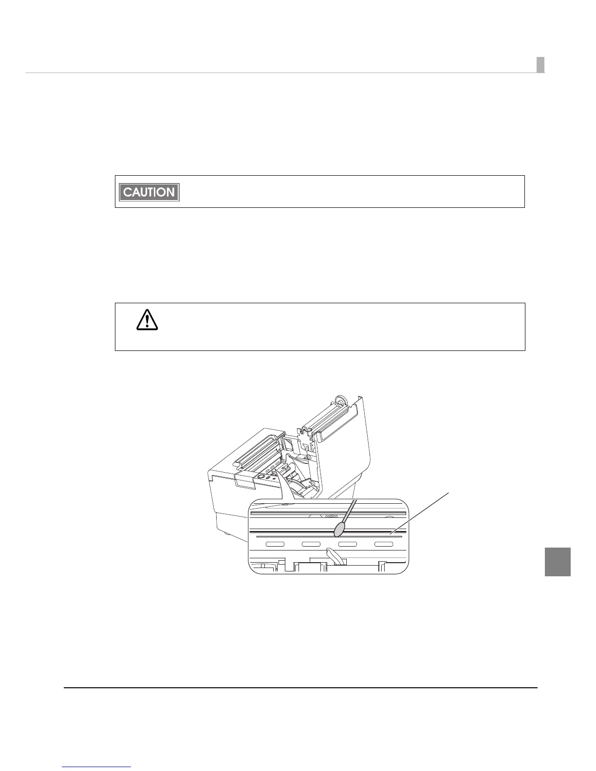 sensor. To remove the paper dust, clean the platen roller and roll paper end sensor with a cotton