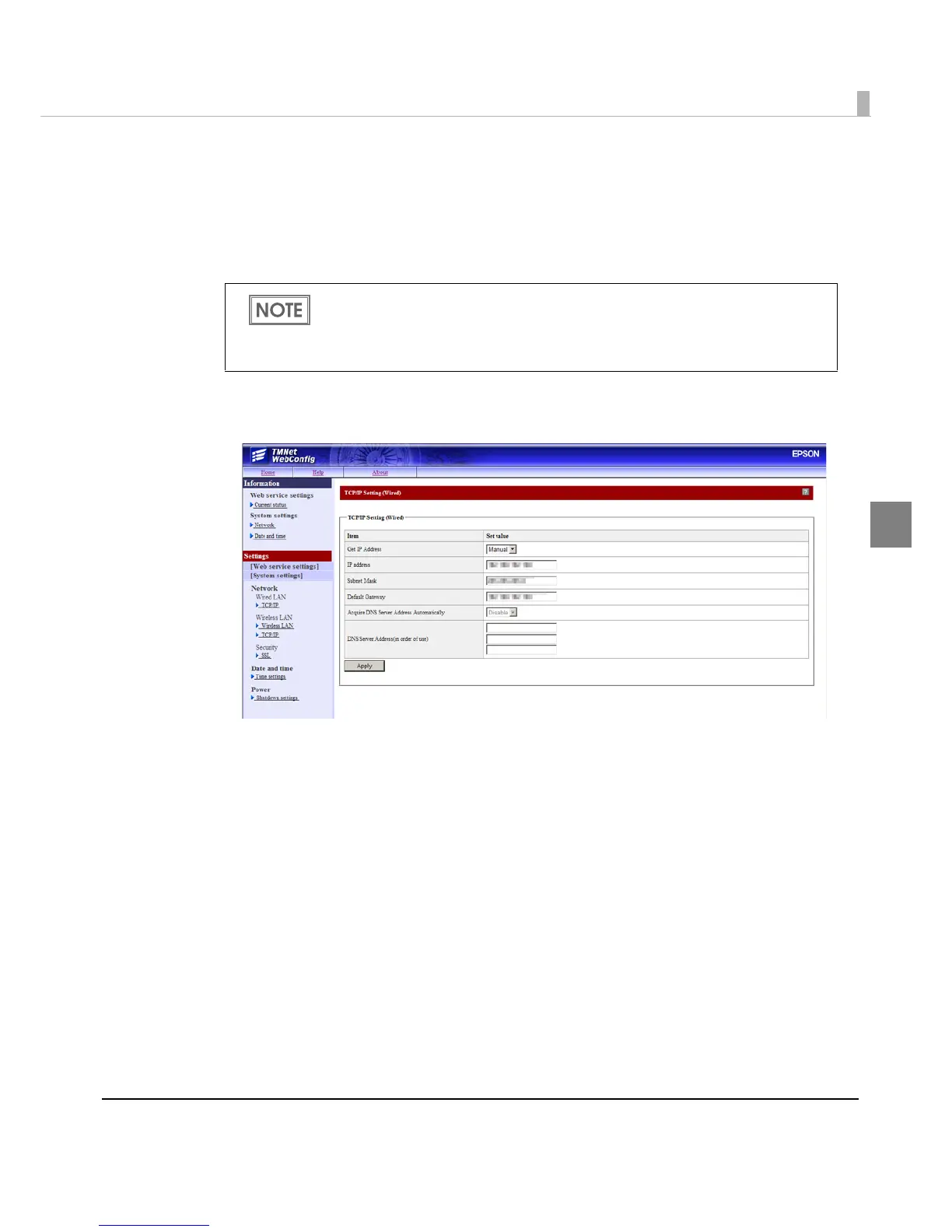 Select [Settings] - [System settings] - [TCP/IP] under “Wired LAN”.