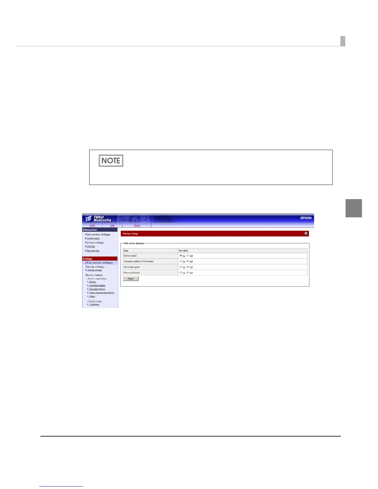 Use EPSON TMNet WebConfig to perform the service setup settings, following the procedures
